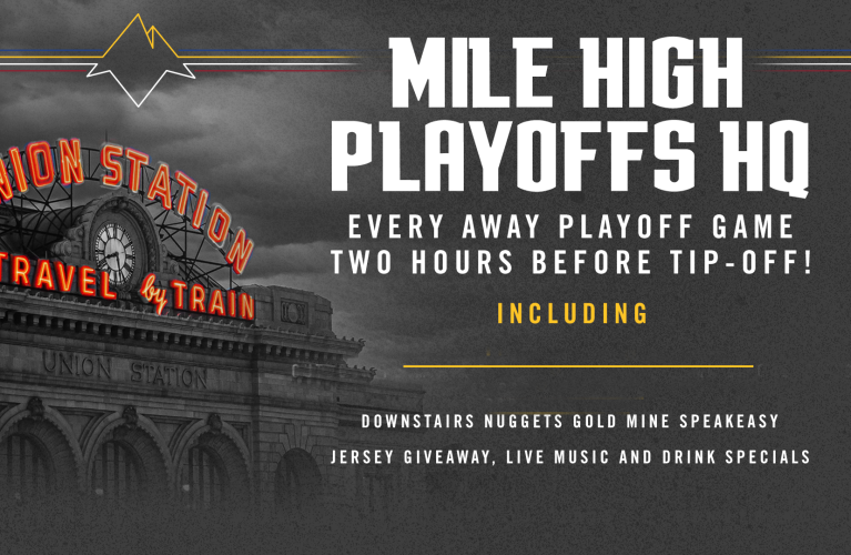 Located on the Lower Level of Denver Union Station, the festive Nuggets Gold Mine Bar will be decorated with basketball paraphernalia large TV’s, a DJ, and more. Special playoff cocktails will include the Gold Rush whiskey drink and the Buzzer Beater tequila cocktail. The Nuggets Goldmine Bar will be open for both Home & Away playoff games, starting two hours before tip-off.