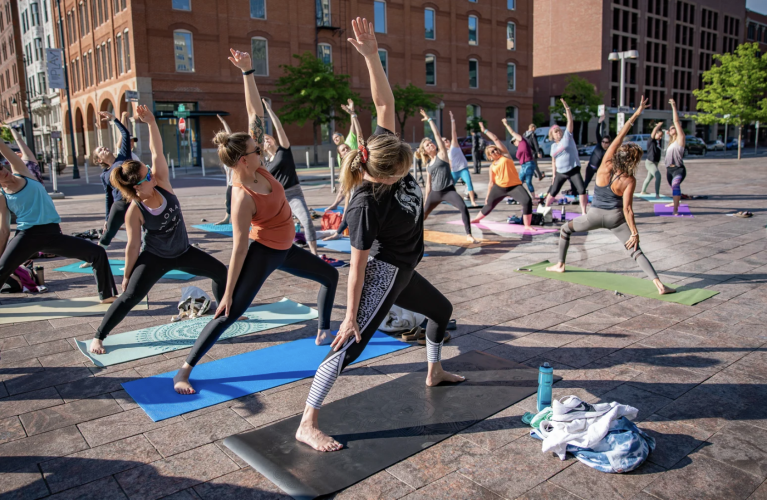Workout: Yoga Sculpt, led by CorePower Tennyson’s Aly Pomerantz on the front plaza of Union Station!