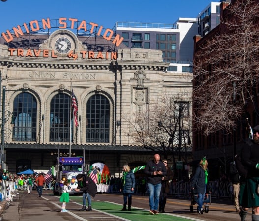 As the Denver St. Patrick’s Day Parade passes along Wynkoop Street, the Terminal Bar Patio at Denver Union Station becomes one of the city’s best vantage points to watch the festivities unfold.