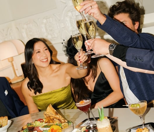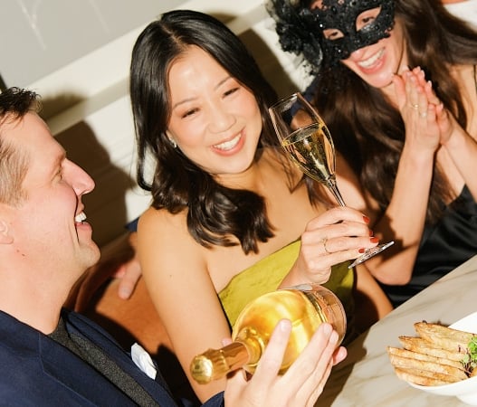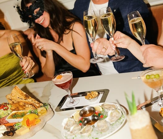 Savor unlimited handcrafted cocktails and elevated mixed drinks. Raise your glass of Ruinart Blanc de Blancs Champagne as the clock strikes twelve. With every glittering reflection and whispered toast, the night promises elegance in its most captivating form.