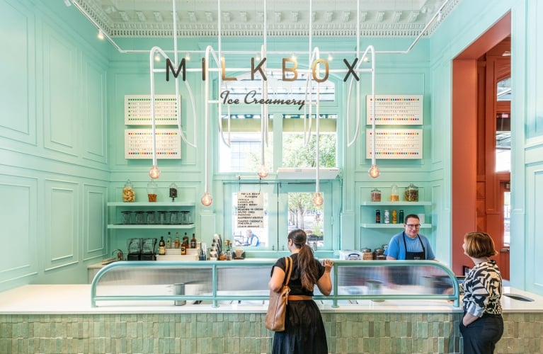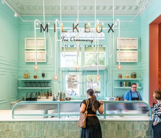 Milkbox Ice Creamery is a small-batch ice cream shop offering hand-crafted, locally made flavors of ice cream, including sorbet and vegan options. Their mouthwatering chilled confections can also be enjoyed as a shake, sundae, cone, or cup, along with boozy shakes and beer or wine floats, for the ultimate in decadent desserts.